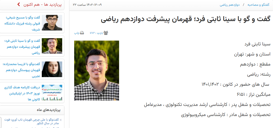 فیزیک رو بدجور خراب کردم ولی رتبم با این حال داخل کشور ۵۳۲ شد و داخل منطقه ۱ ۳۱۲ شدم